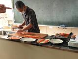 ニジマス教室 投稿: ホームページ編集者 (12/11) 富士宮市が進める「地食健身食育推進事業」の一環として12/2(火)にニジマス教室を行いました。 漁業組合の方からニジマスについての講義をしていただいた後、調理室において、目の前で大きなニジマスをさばいてもらったり、ニジマスの竜田揚げを作ったりしました。 Tweet -